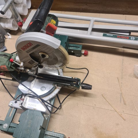 Kraftig sag med en justerbar stativ. Enkel og praktisk å bruke. Det gjenstår 2.5år med garanti på kappsag.