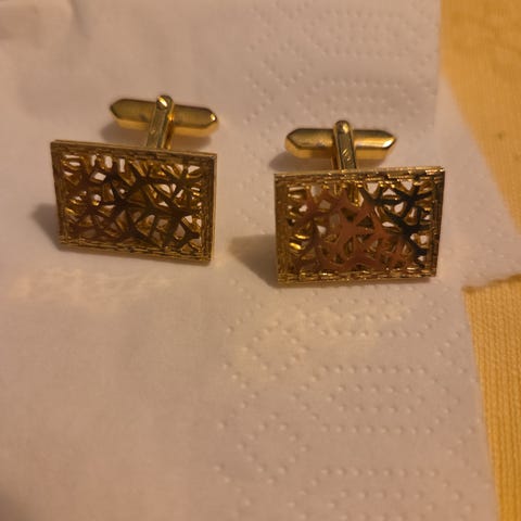 Mansjettknappene har et relieffmotiv av to hjorter i et landskap med gress og trær. De har en karakteristisk bølget eller dekorativ kant. De er ca 2 cm brede i front, hele og fine. Ustemplet, men syretestet og de er i 830s.