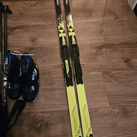 Fischer Twin Skin Pro langrennski i svart og gul farge. Klassiske ski med integrerte fellsoner (twin skin) under midtpartiet for feste uten tradisjonell smøring. Sålen har innsving og spenn tilpasset klassisk langrenn. Passer til tur- og treningsbruk i preparerte løyper. Bindingsplater for NNN/Turnamic-system er montert på skiene.