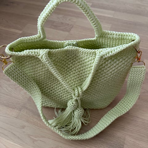 Heklet lekkert nett /totebag i 100% bomull 🌺 Fint til tur i butikken eller som veske på stranden. Eller som hverdags veske 😊 str. 38x38cm. Kan vaskes i maskin på 40 grader uten dusk.