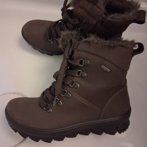 Størrelse: 38. De er litt små i størrelsen. Vil derfor kanskje passe best til en som bruker 37 til vanlig. Jeg bruker 38 i så og si alle typer sko, og disse passer meg akkurat med en tynn sokk, men for vinterbruk synes jeg det er kjekt å ha litt mer romslige sko, jeg skulle derfor ønske at jeg hadde kjøpt disse i 39.