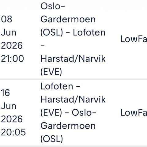 Får dessverre ikke reist selv.. billetten inkluderer 1 håndbagasje, 1 stk 23kg bagasje og 1 stk skiutstyr, begge veier. Prisen inkluderer navnebytte.