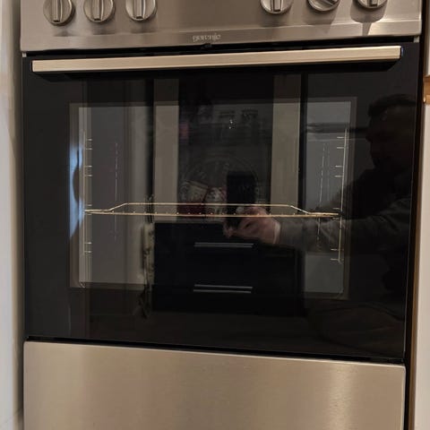 Gorenje komfyr i hvit utførelse. Frittstående modell med stekeovn og platetopp. Platetopp slår seg ikke på. stekeovn virker til å fungere. Selges som reparasjon objekt.