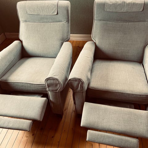 2 komfortable lenestoler med puff – pent brukt