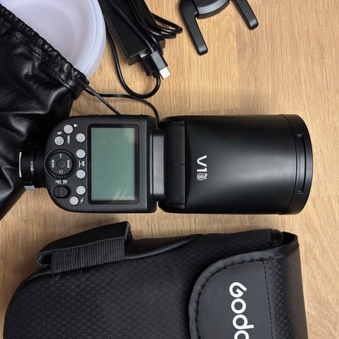 Selger også en Godox V1 Pro Speedlite for Sony som denne fungerer sammen med.
