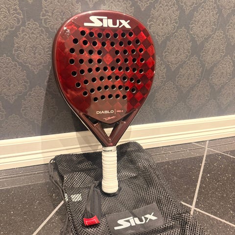 Jeg selger en Siux Electra Pro ST4 som er signatur racketen til den velkjente padelspilleren Franco Stupaczuk. Jeg selger racketen da den ikke helt passer min spillestil og dermed ikke ser banen like mye som den burde. Racketen har en ekstremt god følelse og ikke minst sandpapir overflaten som gir deg den ekstra spinnen. Racketen er ifølge racketspesialisten en hybrid formet racket, altså en blanding av rund- og dråpeformet som gir deg den perfekte kombinasjonen av kraft og kontroll. Racketen sies å skulle ligge et sted mellom 355-375 gram, og vil tro at denne ligger på rundt 370 gram etter som at den har grep og rammebeskyttelse på. Overflaten av racketen er 15k karbon og har en middels-hard følelse i treffet. I og med at racketen er hybrid formet har den relativt stort sweetspot og passer dermed bra for både hobbyspillere, men også de litt mer avanserte spillerene som leter etter en racket som gir deg den perfekte blandingen av kraft og kontroll i spillet ditt.