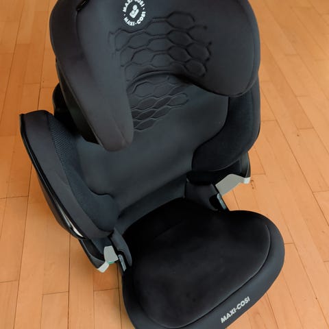 Maxi-Cosi barnesete størrelse 36 i grått. Barnesetet har høg rygg med sidebeskyttelse og justerbar hodestøtte. Setet har Iso-fix.