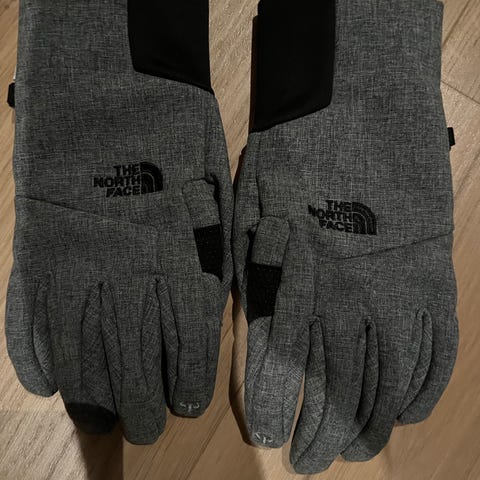 The North Face HyVent hansker i størrelse L. Hanskene er lilla med forsterkede håndflater for bedre grep. De har stramming ved håndledd og snølås øverst for å holde snø og vind ute. Egnet som vinter- og skihansker.