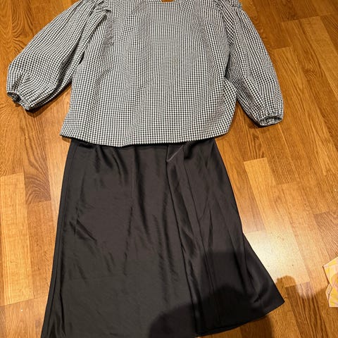 Nytt Vila skjørt i fuskeskinn og ny kul bluse i xl