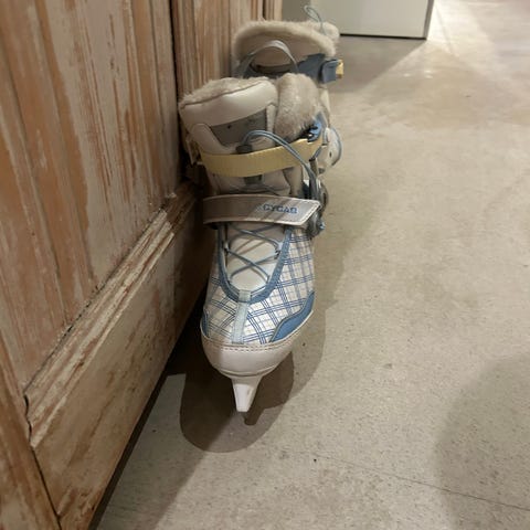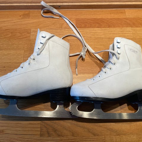 Hvit farge, størrelse 37. Klassisk modell i lær med høy ankelstøtte, snøring foran og hæl i mørk kontrastfarge. Skøytene har metallskinne med tagger foran, egnet til kunstløp eller generell skøytebruk på isbaner. Passer til brukere som trenger skøyter i størrelse 37.