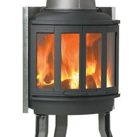 Innebygd peisinnsats med glassfront. Peisinnsatsen er beregnet for montering i vegg og har stor front i glass som gir godt innsyn til flammene. Glassdøren heves opp for åpning. Mures fint inn med brannmursplater.