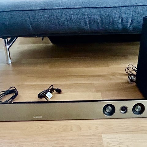 Systemet består av en slank lydplanke for plassering foran TV samt en separat subwoofer for ekstra bass. På toppen av lydplanken finnes knapper for blant annet av/på, inngangsvalg og volum. Strømkabel og fjernkontroll følger med.