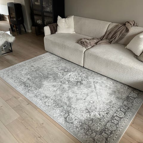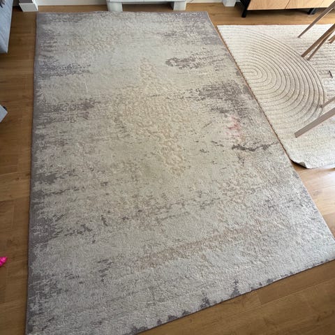 Nylig kjøpt Zara Home teppe, nesten helt nytt! 300/200cm i fargen Grå beige. Teppet er klassisk, ornamentert mønster i lyse og nøytrale toner som passer i stue, soverom eller andre oppholdsrom. (Som sett på bildene er det et tynn teppe) Ny pris 2300kr