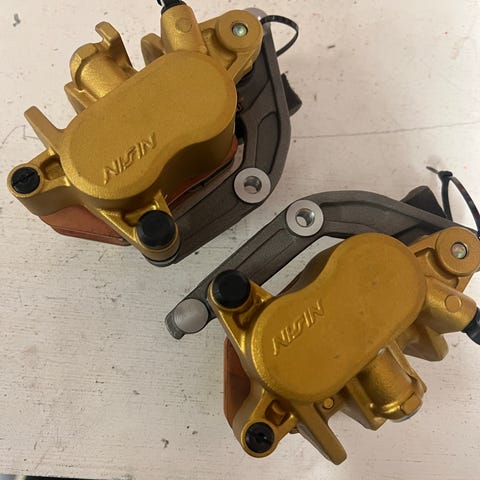 Originale bremsecalipere bak og fram softail Heritage -92. Nye klosser fra 2025, pent brukt pris 2500kr.