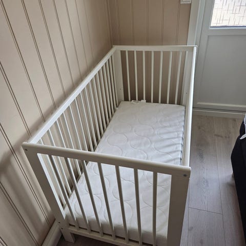 Stødig, ren og praktisk barneseng som passer både til gutt og jente. Lite brukt, uten skader eller riper – ser ut som ny!