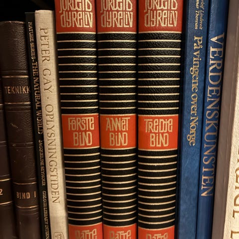 Norske klassikere. Bøkene er innbundet, i meget pen stand, og med kunstskinn med gullpreg på ryggen.