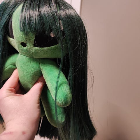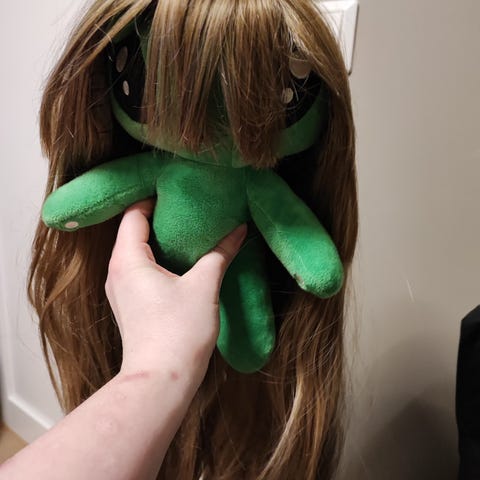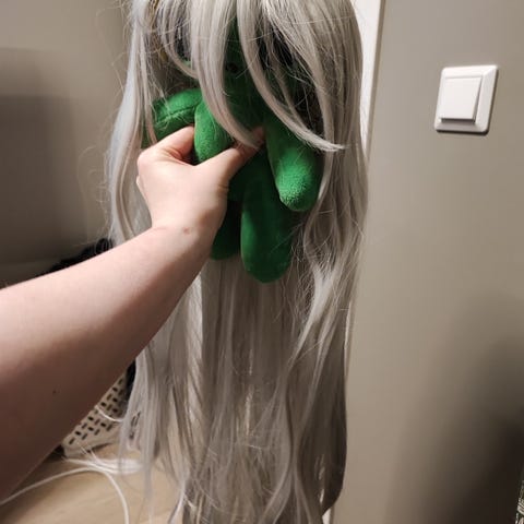 Ubrukt parykk, skulle bruke den til Angel Dust fra Hazbin Hotel, men må selges pga flytting