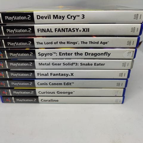 Selger en samling populære PS2-spill. Spillene er brukt, med normal slitasje på cover. Perfekt for samlere eller retro-fans.