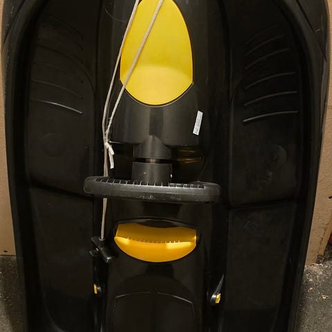 Hama akebrett med ratt i plast, i fargene hvit og turkis. Akebrettet har integrert sete og fotplass, samt håndtak/ratt foran for styring. Egnet til lek og aking på snø for barn under vinterforhold. Brukes på egnede og sikre akebakker under tilsyn av voksne etter behov.