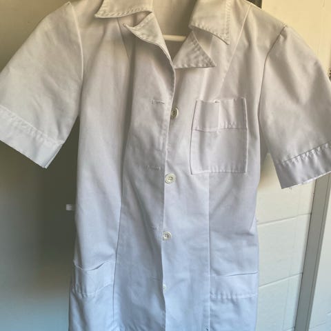 Vintage uniformsskjorte, Jeg tipper sykepleier. Glidelås på ryggen. Virker veldig 50-talls