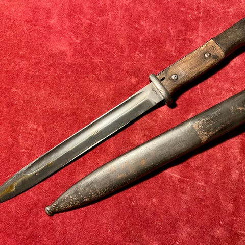 US 1917 bajonett med lærbalg, trolig brukt i begge verdenskrigene.