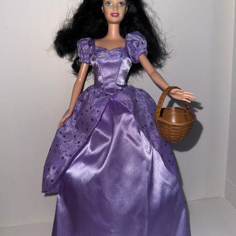 Barbie dukker og bil med tilbehør. Pakken inneholder flere Barbie-dukker i ulike antrekk, en rosa Barbie-bil med plass til dukker, samt diverse klær, sko og små tilbehør til dukkene.