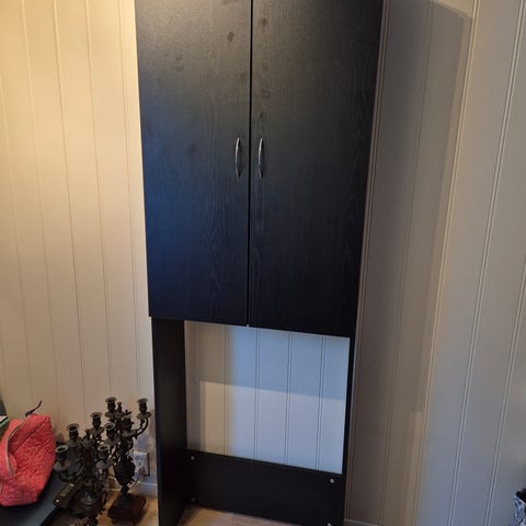 Skapet er pent, nesten ikke brukt og fremstår som nytt. Står i gangen i 1. etasje og kan greit bæres ut helt. Bør være 2 til å bære. Skapet kan demonteres om dere ønsker det.