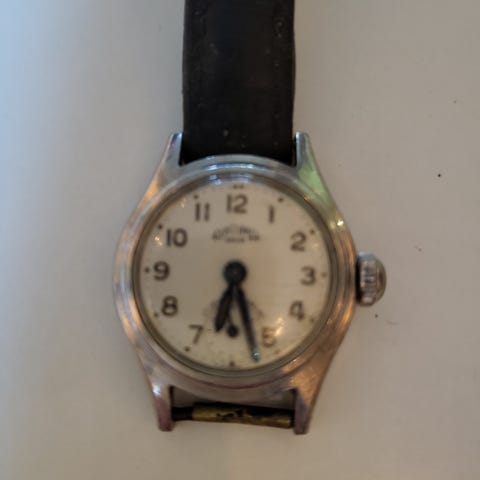 Jeg er ikke så god med klokker. Da jeg fikk den fra et dødsbo funket den ikke, men etter at jeg trakk den opp går den igjen.