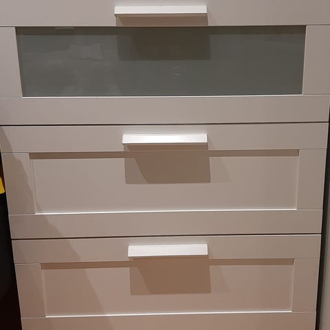 Flott Vida XL com glans hvit kommodesett som består av tre stk.i forskjellige størrelser,selges grunnet mangel av plass.Ingen skader,pent og kort brukt.Se andre mine annonser.
