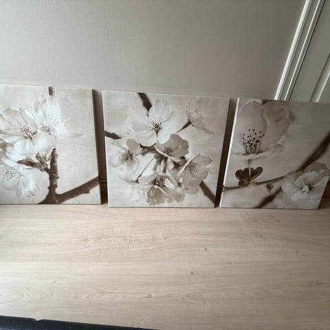 IKEA veggbilde med motiv av blader og naturdetaljer i flere farger. Bildet består av flere felt med ulike bladstrukturer i gult, rødt, grønt og blått, samt noen bær. Passer som veggdekor i stue, spisestue, gang eller kontor.