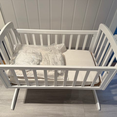 Grei liten seng til baby som kan brukes i foreldrenes seng eller som f. eks reiseseng. Kommer med skrå pute som gjør at babyen slipper å ligge helt flatt. Kan pakkes sammen til en liten firkant, som er enkelt å ta med seg.