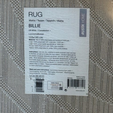 Selger et teppe som blei kjøpt på jysk for 2 år sia.Mjukt og godt og gå på.130+193cm.Må hentes