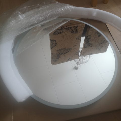 Fint baderomsspeil med lys og anti-dugg. Varmt og kaldt lys, kan skrus av og på.