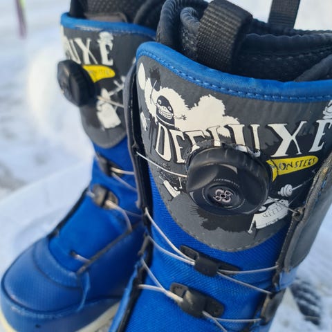 Deeluxe Junior Boa snowboardstøvler i størrelse 35.5. Boa-snøresystem på siden for enkel og jevn stramming. Overdelen er i syntetisk materiale med forsterkede partier foran og bak. Støvlene har polstret pløse og ankelparti for bedre komfort, samt hemper foran og bak for enklere av- og på.