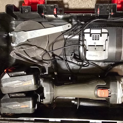 Elektrisk vinkelsliper med kabel, egnet til kapping og sliping av metall og andre materialer. Modellen har beskyttelsesdeksel rundt skiven og bryter plassert på siden av håndtaket. Kompakt utforming som gjør den egnet til arbeid i verksted, garasje eller på byggeplass.