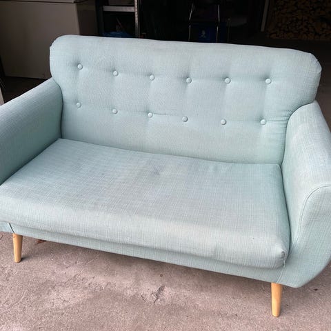 Gir bort en to seter sofa mot henting. Sofaen er ikke like blass i fargene som på bildet, det er ikke det beste lyset. Arvet etter min bestemor, tror hun kjøpte den på Viken møbler i Molde området for en del år siden. Norskprodusert. Katten har dessverre klort et par steder på sofaen. Går kanskje an å trekke om stoffet? (Ikke at jeg kan noe om det). Sofaen har mye bruk igjen hvis man ser bort fra utseendet.