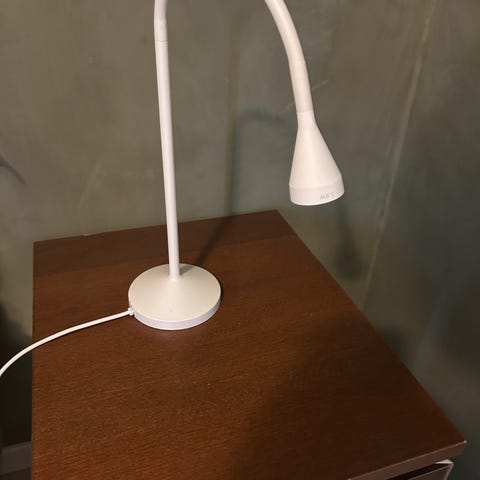 2 stk. pent brukte IKEA bordlamper selges samlet. Fungerende LED-pærer medfølger. Vi har hatt dem på nattbord, har fungert supert, gir behagelig lys. Praktisk bryter-løsning hvor man trekker i en tråd. Nypris 499 kr.