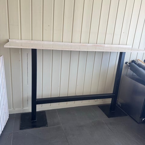 Bordet er stødig, praktisk og har et moderne/rustikt uttrykk.