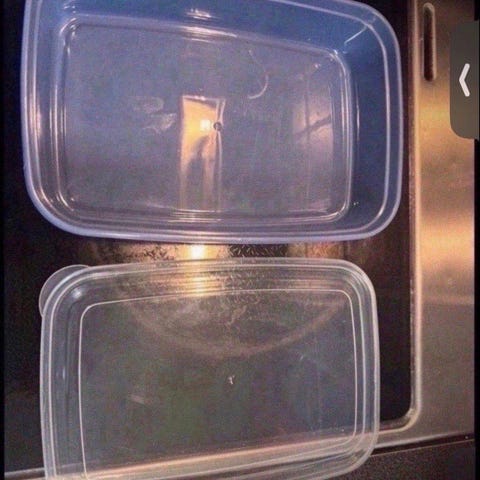 kjøkkenutstyr bestående av ulike gjenstander inkludert plastbeholdere, glass og serveringsfat. Produktene har varierende farger og materialer til bruk i kjøkken og servering.