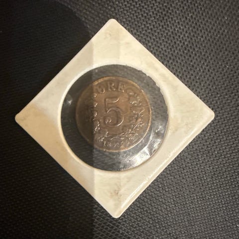 Norge 5 øre mynt -1921 med feilpreg .Bud ønskes