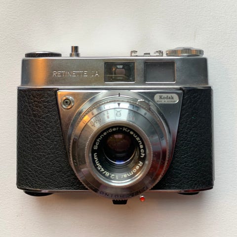 Tysk mid-century kompaktkamera. Skyter, men returfjæra er slakk. Ennagon 45mm F2.8 optikk.