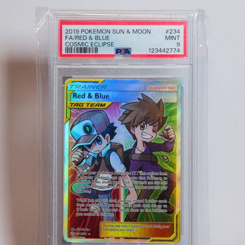 Pokémon Sun & Moon Cosmic Eclipse FA Pikachu samlekort, hemmelig/secret rare-utgave fra 2019. Psa 9.