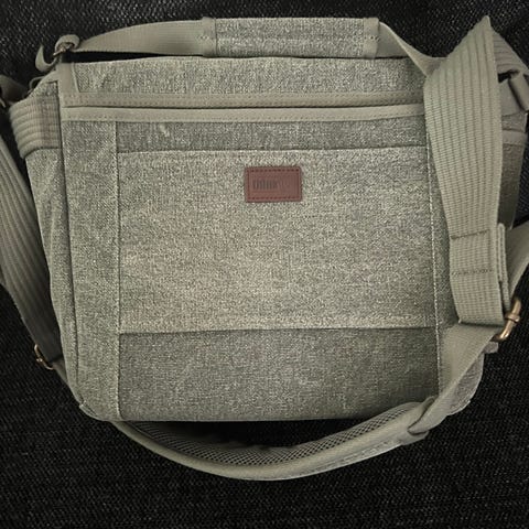 Flere lommer og rom gir plass til minnekort, batterier, kabler og småting. Ytterlomme gir rask tilgang til ofte brukte gjenstander. På baksiden er det stropp for feste på trillekoffert, som gjør den egnet til reiser. Materialet er tekstil/canvas med forsterkede sømmer og metallfester på remmen.