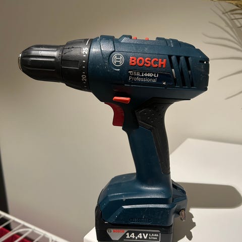 Pent brukt Bosch Professional drill med 1 stk. batteri og lader. Brukt til småprosjekter hjemme.