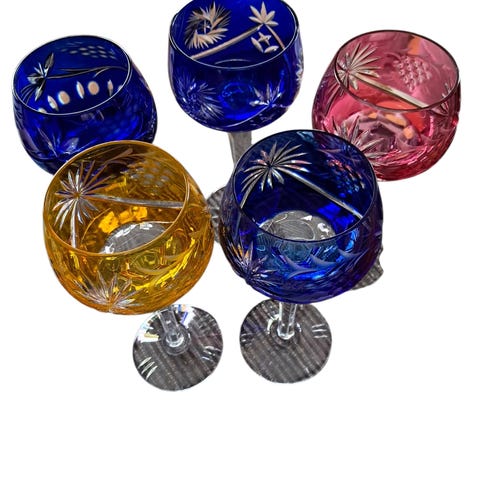 Meget vakre krystall vinglass🤩 5 stk. Disse er bare så ubeskrivelig vakre❤️ 17.5 cm høye og 8.5 cm i diameter. Ingen hakk og glassene er tynne og såå elegante. Formen på de og de utallige slipningene på de. Ja, jeg skjønner jeg ble bergtatt av disse🤩