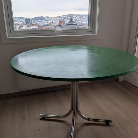 Fint rundt bord, perfekt for kjøkkenet. Er to små merker, se bilder. De syntes ikke med mindre man ser veldig nøye.