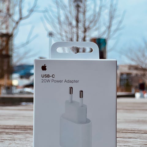 Strømadapteren har USB‑C‑utgang og er beregnet for lading av kompatible enheter som iPhone, iPad og andre produkter som støtter USB‑C‑lading. Effekt på 20 watt gjør den egnet for hurtiglading av støttede enheter.