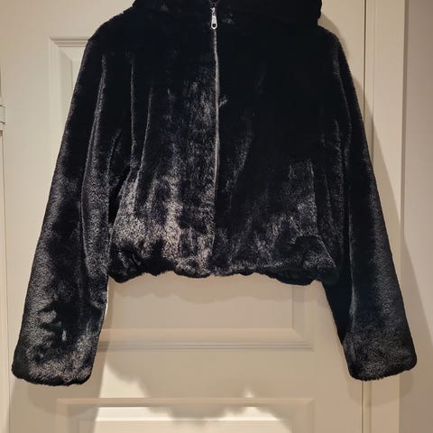 Stilig jakke med detaljer av imitert skinn. Den er foret. Nyvasket.