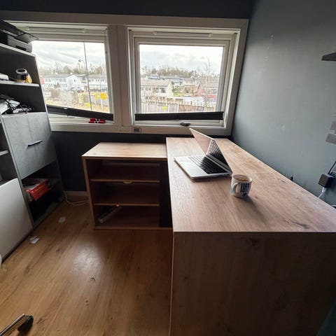 Lite brukt hjørnepult artisan eik 120x140x75 cm. Tilpasset bruk av PC og tastatur. Selges grunnet flytting.