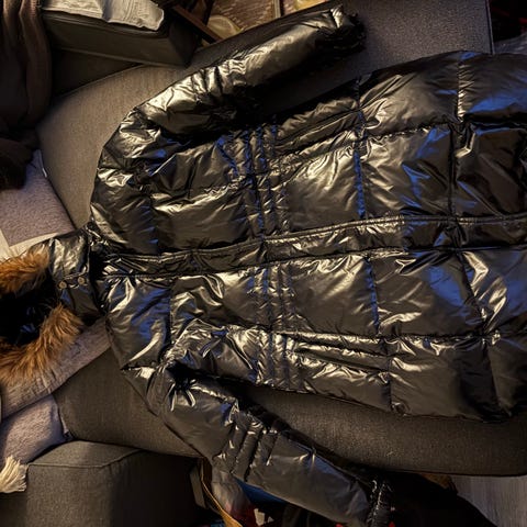 Michael Kors vinterjakke for dame i størrelse M. Jakken er svart og laget i polyester med vattert, quiltet design. Den har glidelåslukking foran, hette med pelskant (materiale på pelskant ikke spesifisert) og lommer i sidene med glidelås. Ermene har ribbestrikkede partier for bedre passform. Passer som ytterjakke i den kalde årstiden.